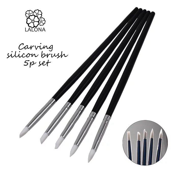 [LALONA] シリコンブラシ5種セット ( 黒 ) ( 彫刻ネイル クレイジェル )ネイルカービング用/ジェルネイル/ネイル