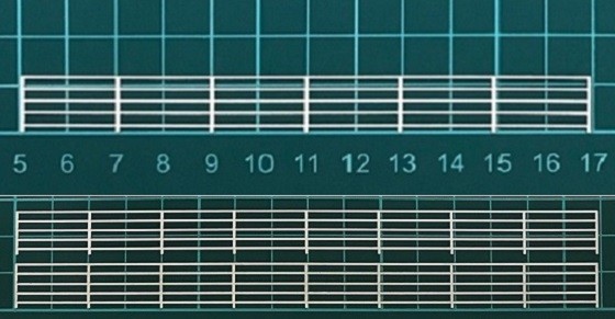*傾斜ナシの(よこ型・よこ棒)の手すり(2個入り)です。材質:ペーパー製カラー:ホワイト【仕様】(画像を参照下さい);・手すりのサイズ(高さH×間隔W×長さ×厚み)mm:12mm×20mm×158mm×厚み0.5mm(間隔Wの間には横棒が入っています)*スケール:1/100 HOスケール【特徴と取扱注意点】;・各種のフェンス・手すりの表現に最適です。・カッターナイフ等でカットできます。適当なスパンでカットしたり、内側の枠(縦棒)を減らすことも出来ます。・紙なので曲げやすいため曲線部・曲面状の表現も可能です。・紙なので水には弱いことを注意下さい。・接着は木工ボンドをおすすめします。・レーザカットによる少々の黄ばみ出るので、塗装(ラッカー系の塗料をご使用下さい)か サンドペーパーでの研磨をするときれいに見えます。