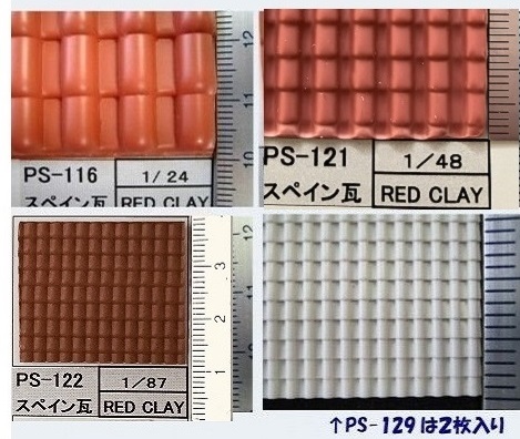 PS-116 PS-121 PS-122 スペインかわら 3種類 スペイン瓦 プラストラクト プラ材 プラシート パターンシート