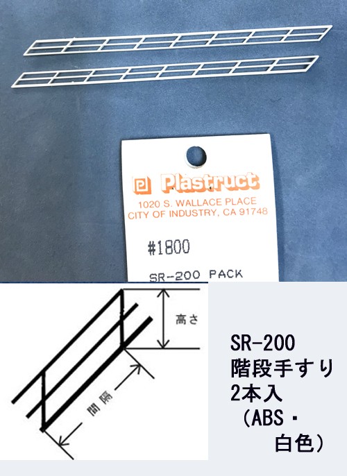 SR-200 【N 1/200】階段手すり(ABS・白色)2本入り プラストラクト 模型材料 プラ材 建築模型