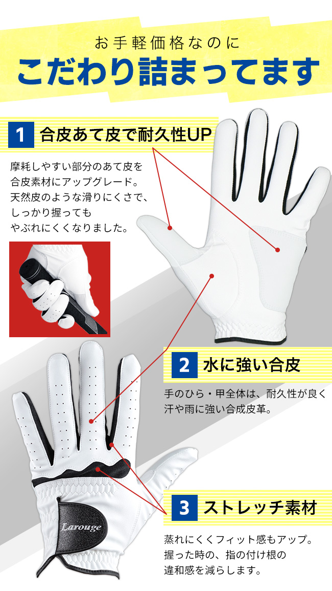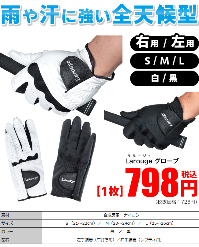 グローブ 全天候型 Larouge ラルージュ天然あて革つき 右手用・左手用 合成皮革 羊皮 ゴルフ手袋 製造直販ゴルフ屋 ※