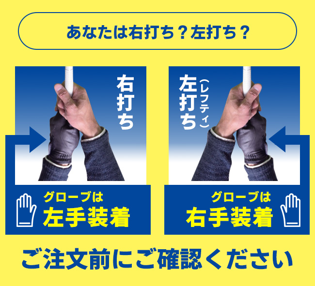 左打ち(レフティ)の方は【右手装着(左打ち用)】