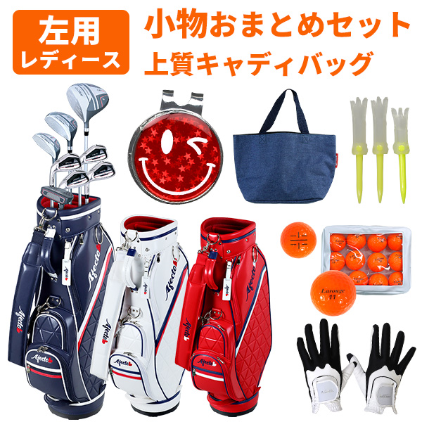レディース 左用 ゴルフクラブセット Afecto AFCB20-1L CR-01 おまとめセット クラブ8本 上質感キャディバッグ 小物 ※