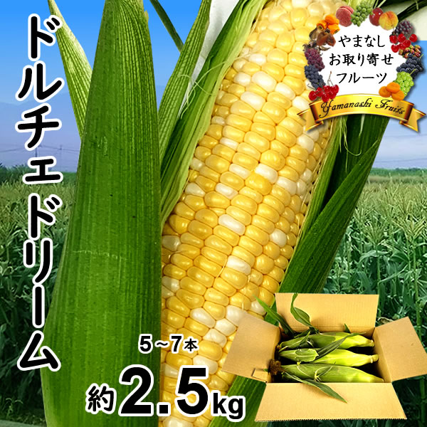 とうもろこし ドルチェドリーム 甘い スイートコーン 山梨県産 2.5kg 5〜7本入り L〜LLサイズ 送料無料 トウモロコシ 市川三郷町