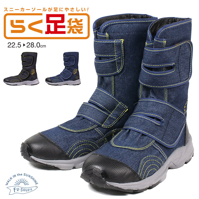 ブーツ メンズ レディース ガーデニング 作業靴 ミドル丈 農作業 軽量 足袋 マジックテープ 面ファスナー デニム 軽い 防滑 履きやすい 畑仕事 靴 ネイビー 3004