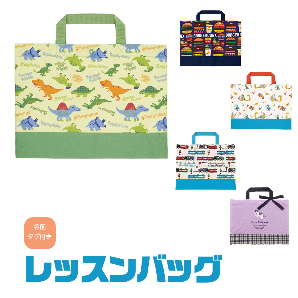 レッスンバッグ 通園 通学 塾 習い事 スナップボタン付き ネームタグ付き KBL1 スケーター skater ディノサウルス ピクチャーブック 恐竜 ダイナソー はたらくクルマ ショベルカー ブルドーザー バーガーコンクスミックス ハンバーガー ポテト ドリンク BURGERCONX ユニコーン 電車 通園かばん レッスンバッグ おでかけ 幼稚園 保育園 かわいい 男の子 女の子 スケーターオリジナル