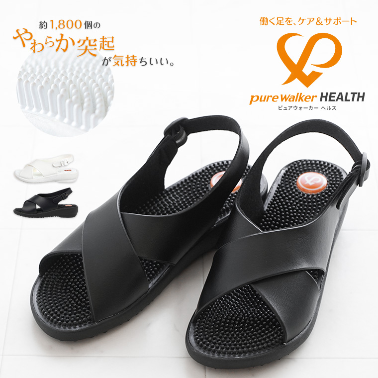 ナースシューズ 疲れにくい レディース 白 バックストラップ 健康サンダル 足裏マッサージ 軽量 オープント ナースサンダル 歩きやすい ブラック 7609