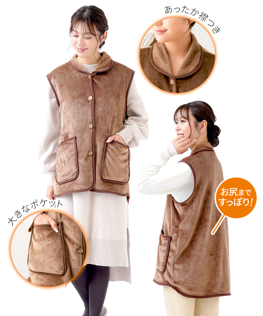 お尻までふんわり包み込むあったかベスト。