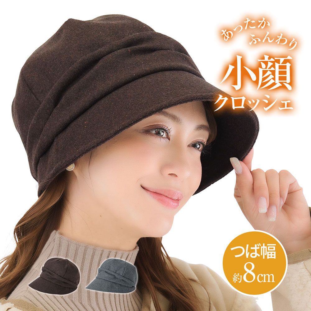 帽子 レディース 秋冬 コンパクト あったか 暖か 寒さ 対策 ハット 杢柄 茶色 ダークブラウン グレー あったかふんわり小顔クロッシェ 238