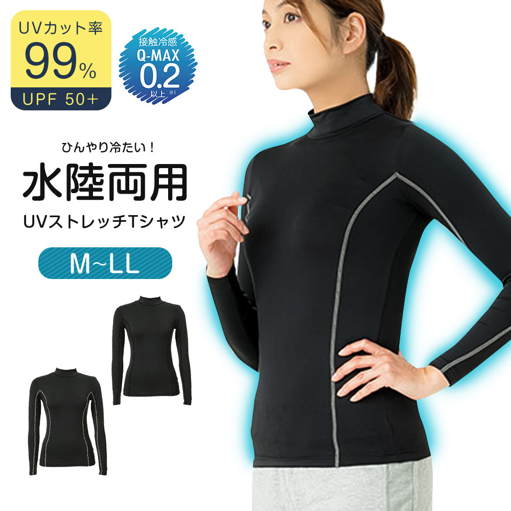 クールUVストレッチロングTシャツ ロング tシャツ レディース ラッシュガード 長袖 uvカット アウトドア スポーツ 夏 夏用 黒 ブラック 26
