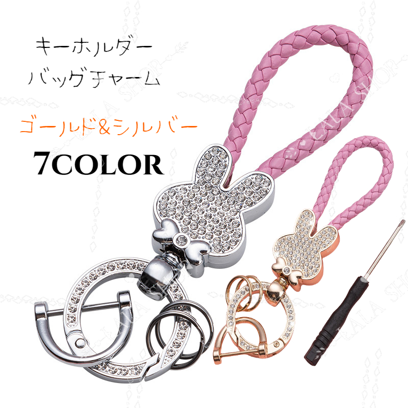 キーホルダー レディース バッグチャーム キーリング キラキラ ラインストーン 車 鍵 ウサギ スマホ アクセサリー ポップ カワイイ おしゃれ プレゼント
