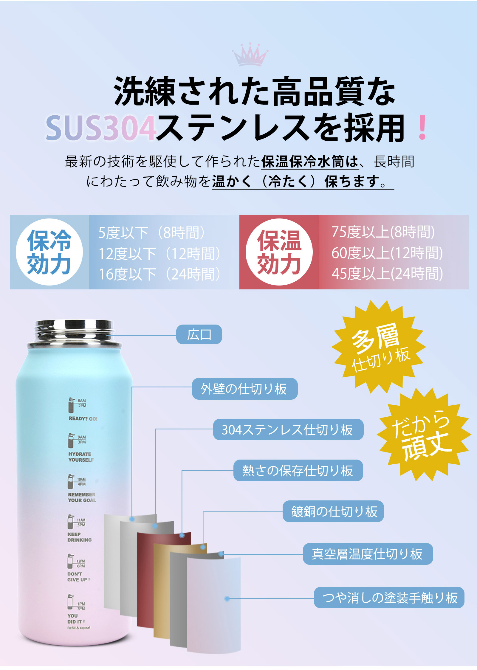 真空多重構造なので抜群の保温・保冷力水筒