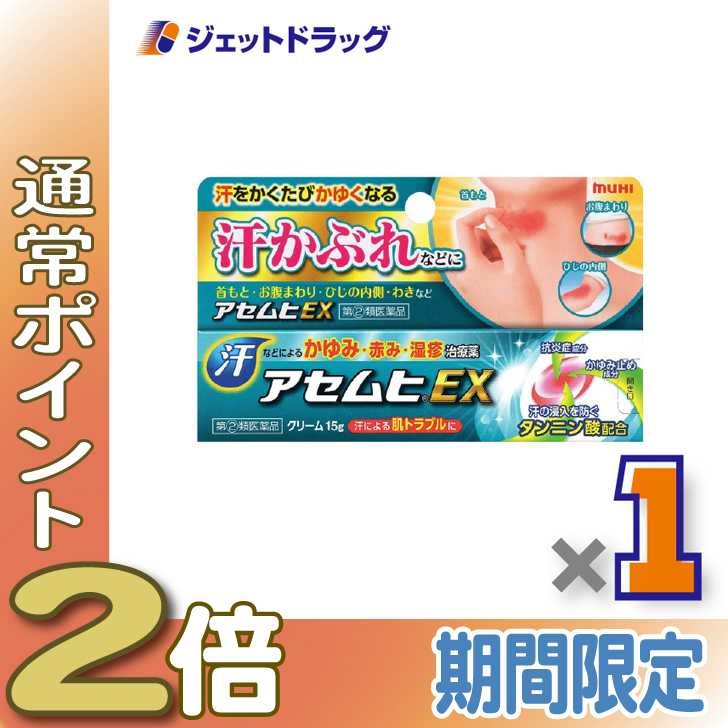 【指定第2類医薬品】アセムヒEX 15g ×1個 ※セルフメディケーション税制対象〔汗かぶれ〕