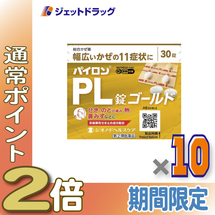 【指定第2類医薬品】パイロンPL錠ゴールド 30錠 ×10個 ※セルフメディケーション税制対象〔かぜ〕