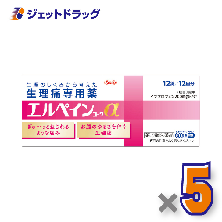 【指定第2類医薬品】エルペインコーワα 12錠 ×5個 ※セルフメディケーション税制対象〔生理用鎮痛薬・イブプロフェン〕
