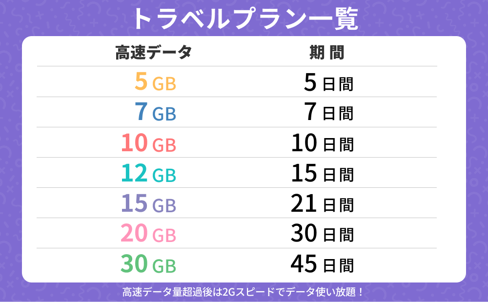 ・5GB / 5日間 まで高速データ。超過後は2Gスピードで使い放題。