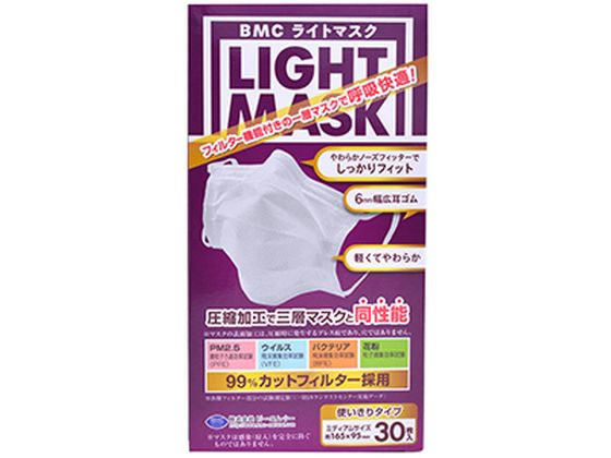【お取り寄せ】ビー・エム・シー BMCライトマスク ミディアムサイズ 30枚入 マスク 鼻 のど対策 メディカル