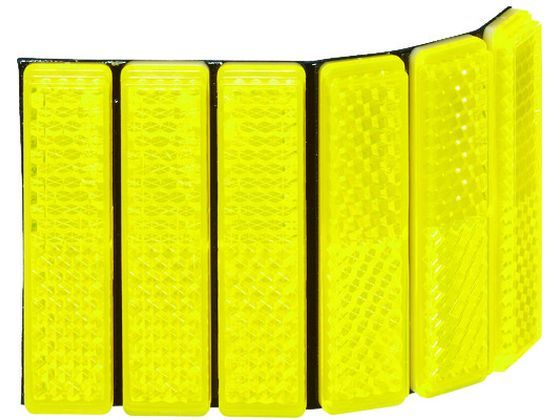 【商品説明】●工場、倉庫などあらゆる標示に。さまざまな危険標示。衝突防止標示に。各種施設の段差標示。誘導表示。●特殊反射板にて光源の再帰性反射効果が高い製品となります。●夜間での光源がない危険な場所での光源反射にて注意を促します。●必要な長さに応じてカッターなどで切断できます。【仕様】●型番:RR-1-DGA6P ●入数:1枚 ●色:蛍光黄 ●幅(mm):50 ●長さ(mm):70 ●厚さ(mm):6 ●取付方法:貼付タイプ ●反射レンズ:6枚 ●反射レンズサイズ:50×11mm/枚 ●反射材:アクリル材 ●粘着剤:ブチルゴム系 <ジェットプライス>
