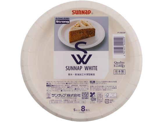 サンナップ サンナップホワイトペーパープレートS 17cm 8枚入 P1708SNP 使いきり皿 テイクアウト 使いきり食器 キッチン テーブル