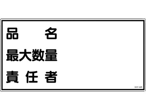 【お取り寄せ】消防・危険物標識 品名・最大数量・責任者 KHY-42R エンビ 安全標識 ステッカー 現場 安全 作業