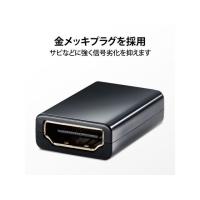 【商品説明】HDMIケーブル同士を接続し、延長するアダプターです。従来品に比べ約32%小さいスリムコネクター採用により、配線時の省スペース化が図れます。短いHDMIケーブル同士を接続し、最大5mまで延長することが可能です。※本製品はリピーター機能非搭載です。ケーブル総延長が5mを超えないよう接続してください。また、接続するケーブルの仕様によって映像が正常に映らない場合があります。【仕様】●コネクタ形状:HDMI(タイプA)メス−HDMI(タイプA)メス ●カラー:ブラック ●対応解像度:4K×2K対応 ※接続するケーブルの仕様によっては解像度が落ちたり映像が正常に映らなかったりする場合があります。 <ジェットプライス>