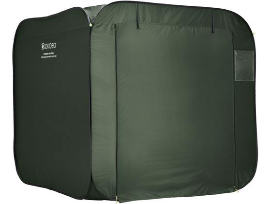 ファスナーで屋根が開けられる防災テント。