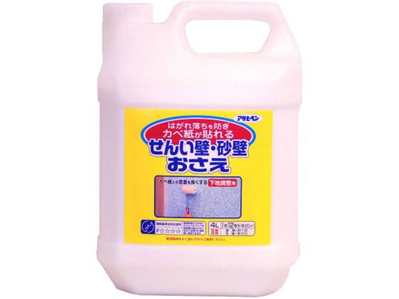 【商品説明】●せんい壁・砂壁などに、カベ紙を貼る時の下地調整用塗料で、壁面を補強してはがれ落ちを防ぎ、カベ紙との密着を強化します。●水性タイプで取り扱いが簡単です。●うすめずにそのまま使用できます。●建築基準法対応F☆☆☆☆(建築基準法で定めたホルムアルデヒド放散量が最も少ない区分で、居室内に無制限に塗装できます。)【用途】●せんい壁、砂壁、しっくい、コンクリート、モルタルなどにカベ紙を貼る場合の下地調整に。【仕様】●内容量:4L ●重量:4725g●カラー:透明●材質:合成樹脂(アクリル樹脂)、水●使用面積の目安:タタミ約12枚分(約20m2) <ジェットプライス>
