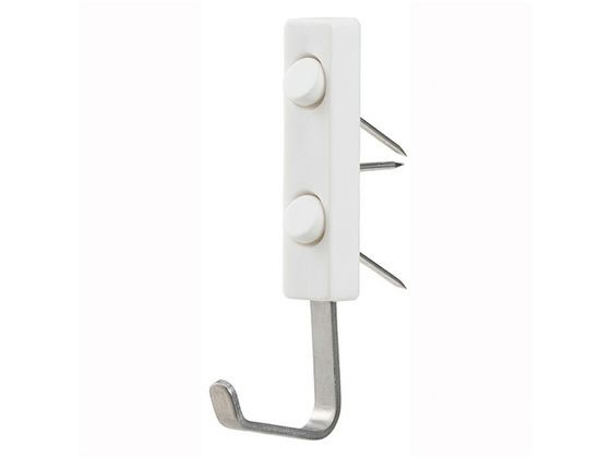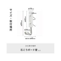 【仕様】●本体サイズ:約10×40×59Hmm ●内容量:3個 ●材質:支持部/ABS樹脂、フック/ステンレス鋼板、ピン/ステンレス鋼線 ●荷重制限:3kg(静荷重 ※静止状態での荷重) ●生産国:中国 【取り付けられる所】 壁紙・布壁紙・ビニル壁紙貼りなどの石こうボード壁 【取り付けられない所】 ・吸音ボード(石こう吸音ボード・ロックウール吸音ボード) ・土壁、しっくいなどのもろい壁 ・コンクリート、ブロック、レンガなどのかたい壁 ・タイル及びタイルの目地 ・柱・板壁・プリント合板・カモイ 【使用上の注意】 ・万一の落下にそなえて貴重品やこわれやすいものを掛けたり付近に置かないでください。 ・この商品に使用しているピンは鋭利なので、幼児の手の届かないところに保管してください。 ・火のそばで使用しないでください。 ・荷重制限をお守りください。 ・壁面を傷める原因となるため、フックの先端に荷重をかけたり、衝撃のかかる掛け方はしないでください。 ・フックの固定がゆるくなった場合は、場所を替えて付け直してください。 ・フックに掛けたものは、引っぱらないでください。 ・ロープを張るなど