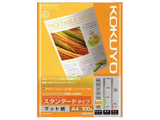 コクヨ インクジェット用紙 スタンダード A4 100枚 KJ-M17A4-100 A4 インクジェット用紙 マット紙