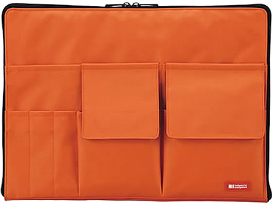 【商品説明】ダブルファスナーで大きくコの字に開くメインポケット。マチなしポケットは、かばんの中から小物を素早く取り出せます。便利なペンポケットは3本収納できます。マチ付ポケットには落下防止の為のフタが付いています(使用しない場合はポケット内部に収納できます)。本体2mm厚のクッション入りで落としても安心。【仕様】●色:橙●サイズ:A4●寸法:幅350×奥行17×高さ255mm●材質:本体/ポリエステル、緩衝材/ポリウレタン●メインポケット×1(ダブルファスナー仕様)、マチなしポケット×2、マチ付きポケット×2、ペンポケット×3 <ジェットプライス>