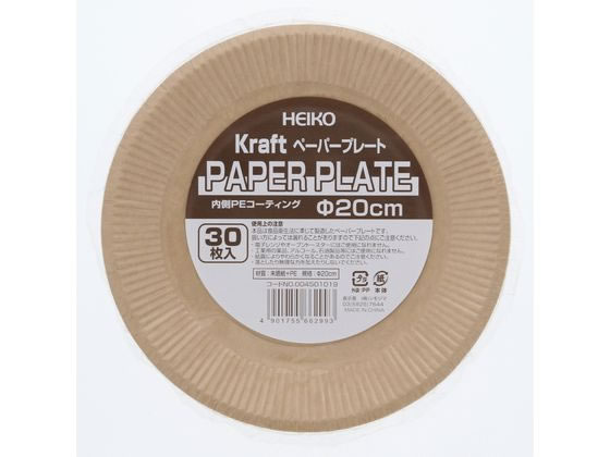 【お取り寄せ】シモジマ ヘイコー 紙皿 クラフトペーパープレート 20cm 30枚 使いきり皿 テイクアウト 使いきり食器 キッチン テーブル