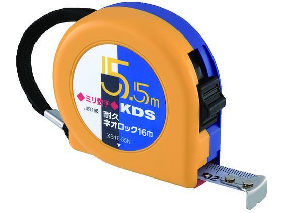 【商品説明】●読み取りミスを防ぐ直読性に優れたミリ数字目盛です。●耐摩耗性に優れたデュラコートテープを採用しています。●両面目盛です。●コンパクトデザインです。【仕様】●型番:XS16-55N ●テープ長さ(m):5.5 ●テープ幅(mm):16 ●水平保持(m):1.3 ●ベルトフック:無 ●移動爪 ●ロックタイプ ●JIS1級 ●両面目盛 ●455mmピッチ表示:あり ●減速ボタン:なし ●ショックアブソーバー:あり ●ベルトフックなし ●テープ:スチール <ジェットプライス>
