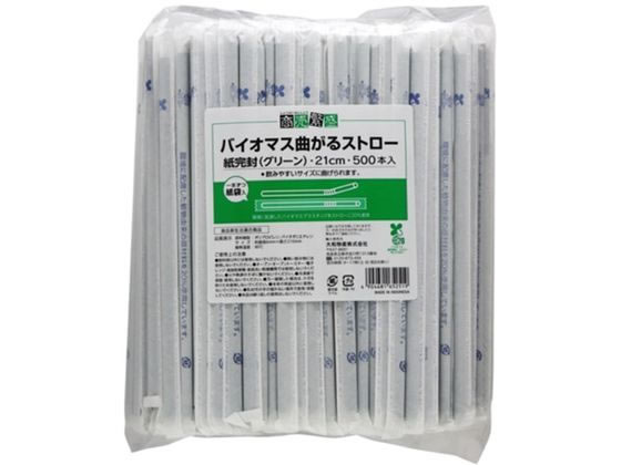 大和物産 商売繁盛バイオマス曲がるストロー紙完封緑21cm500本