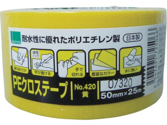 【お取り寄せ】オカモト NO420 PEクロステープ包装用 黄 50ミリ 420Y 養生テープ ガムテープ 粘着テープ 梱包