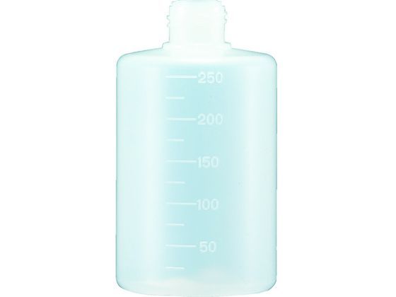 【商品説明】●キャップが無く別売りのキャップを使用して色分けができます。【仕様】●型番:0822B ●色:透明 ●容量(ml):250 ●目盛間隔(ml):25 ●外径(mm):64 ●高さ(mm):117本体内径(mm):φ15 ●目盛付 ●ポリエチレン(PE) ●界面活性剤および有機溶剤の種類によってはノズルキャップに影響を及ぼすため、正常に使用できない場合があります。 <ジェットプライス>