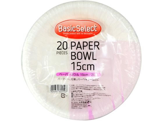 【お取り寄せ】大和物産 ベーシックセレクト ペーパーボウル15cm 20枚 使いきり皿 テイクアウト 使いきり食器 キッチン テーブル
