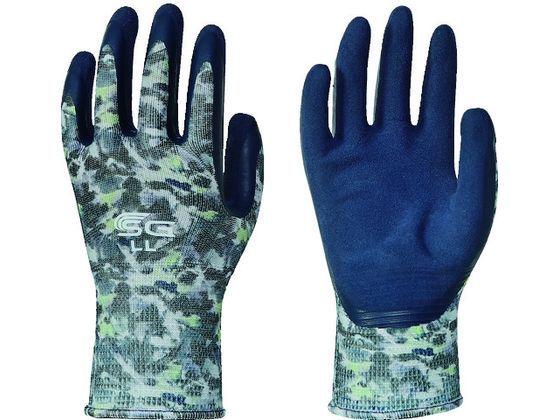 【商品説明】●天然ゴムをコーティングしているため、引き裂きに強く、しなやかで作業性の良い手袋です。●コーティング部分は防水性のある1層目とすべり止め加工の2層目の二重構造で、防水性とグリップ力を兼ね備えています。●特殊すべり止め(マイクロフィニッシュ[[R上]])加工で、ドライ・ウエットでもグリップ力を発揮します。●13ゲージの薄手タイプで、細かい作業に適しています。【仕様】●型番:SG-R107-LL ●色:ぼかし柄グレー/ダークブルー ●サイズ:LL ●厚さ(mm):約1.3 ●ゲージ数:13 ●全長(cm):25.0 ●手のひら周り(cm):19.0 ●中指長さ(cm):7.8 ●13ゲージ編 ●繊維部:ポリエステル ●すべり止め部:天然ゴム <ジェットプライス>