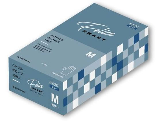 川西工業 ニトリルグローブ フェリーチェスマート ブルー M 100枚 #2067 ニトリルゴム 粉なし 使い捨て手袋 作業用手袋