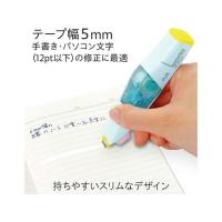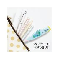 【商品説明】ペンポーチに収まりやすいペン型ボディ。重ね引きに強く、修正位置がわかりやすくなっています。指一本でワンタッチ開閉する新型キャップを採用。使用しない時にはしっかりとヘッド部分を保護します。本体の両端を持って左右に引っ張るだけで簡単にテープ交換できます。【仕様】●テープ幅:5mm●テープ長さ:6m●本体寸法:幅26×奥行19×高さ113mm●カラー:ペールブルー●仕様:本体●材質:93%再生樹脂(本体ケース/100%再生ポリスチレン)●注文単位:1個●グリーン購入法適合 <ジェットプライス>