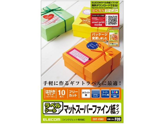 【お取り寄せ】エレコム フリーカットラベル ハイグレード紙 はがき EDT-FHKI ノーカット インクジェット用ラベルシール 粘着ラベル用紙