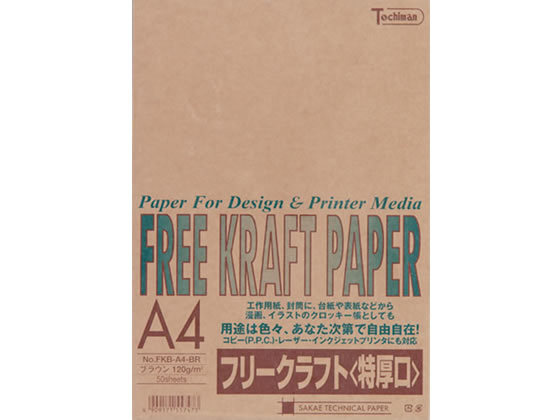 【仕様】強靭性にすぐれ、柔軟性があり、工作および張り紙の補修用・ポップ用・封筒・ラッピング・便箋などいろいろな用途に適した用紙で、レーザー・インクジェットなどのプリンタでも使用できます。 ●入数:50枚●サイズ:A4(210×297mm)●紙厚:120g/m2●紙色:ブラウン●コピー(P.P.C.)、レーザー、インクジェットプリンタに対応 ※メーカー社名が「トチマン」→「栄紙業」→「SAKAEテクニカルペーパー」へ変更となっております。 <ジェットプライス>