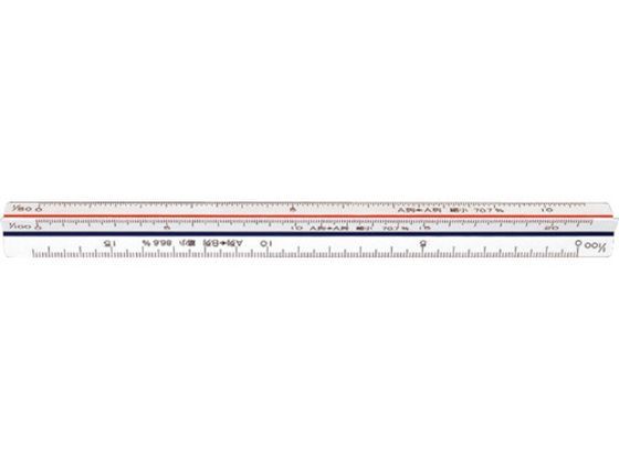 図面作成、寸法の読み取りに使用する三角スケール。