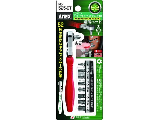 【お取り寄せ】アネックス コンパクトビット・ラチェット52 超短ヘクスローブビットセット ストレート型 525-9T