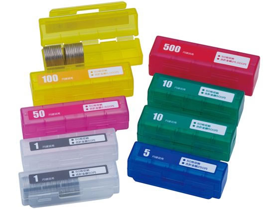 【仕様】●セット内容:1円・10円・100円硬貨用×各2個、5円・50円・500円硬貨用×各1個●硬貨収納枚数:各種硬貨50枚●サイズ/重量:【1円硬貨用】幅85×奥行29×高さ24mm/10g【5円硬貨用】幅85×奥行31×高さ26mm/11g【10円硬貨用】幅86×奥行32×高さ27mm/13g【50円硬貨用】幅96×奥行30×高さ25mm/13g【100円硬貨用】幅94×奥行31×高さ26mm/14g【500円硬貨用】幅100×奥行35×高さ30mm/17g●材質:PP(ポリプロピレン)●仕様:硬貨飛散防止、10枚仕切、ワイドストッパー(留め具2箇所)●極度な硬貨の変形または、新旧硬貨の組合せでのご使用はお止めください。 <ジェットプライス>