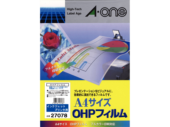 【お取り寄せ】3M エーワン OHPフィルム インクジェットプリンタ用 ノーカット 50枚 27078 OHPフィルム 関連品 PC パソコン 家電