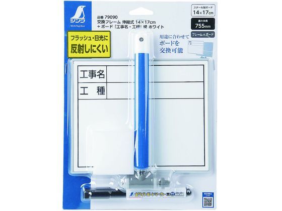 【お取り寄せ】シンワ 交換フレーム伸縮式14×17cm+ ボード「工事名・工種」横白 道路工事用材 土木 建設 工事 建築資材