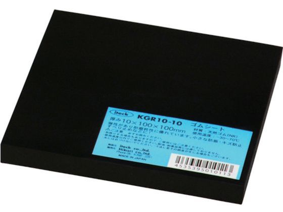 【商品説明】●耐摩耗性に優れています。●弾力性が良いです。●機械的性質が良いです。【仕様】●型番:KGR10−10 ●厚さ(mm):10 ●幅(mm):100 ●長さ(mm):100 ●色:黒 ●使用温度範囲:−30〜70℃ ●天然ゴム(NR) <ジェットプライス>
