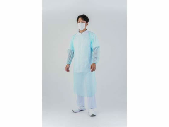 【商品説明】防水性が高い使い捨てプラスチックガウン。まとわりつきにくいエンボス加工が施されています。衛生管理や衣服の汚れ防止に【仕様】●色:ブルー●材質:ポリエチレン●個装入数:10枚●その他仕様:(着丈)約1130、 (袖丈)約720mm●注文単位:1箱(10枚) <ジェットプライス>