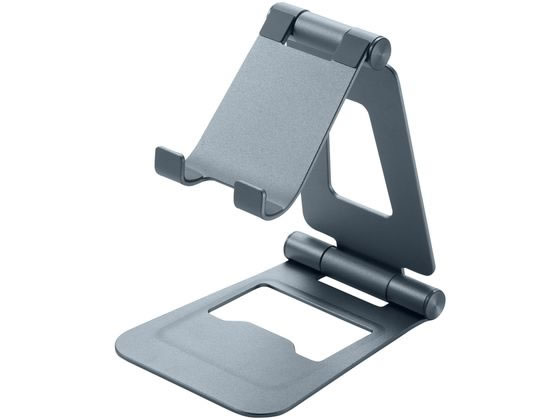 【商品説明】スタイリッシュなアルミ製のタブレットスタンドです。2つのヒンジにより使用環境に合わせて見やすい角度に調整でき、折りたたんでコンパクトに持ち運べます。ケースを装着したままのタブレットにも対応し、接触部にはキズ防止ゴムパッドを備えています。丈夫なアルミ素材と底面の滑り止めラバーにより、操作時も安定して使用できます。背面には充電ケーブルを通せるケーブルホールを搭載しています。【仕様】●材質:アルミ ●角度調節:対応 ●サイズ:約W105×D152×H32mm(折りたたみ時) ●重量:約241g <ジェットプライス>