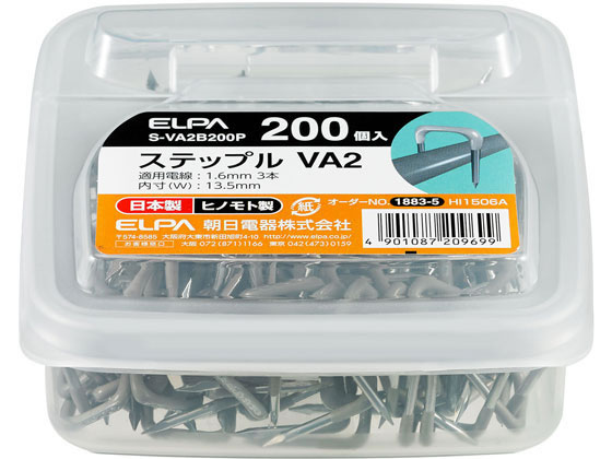 【お取り寄せ】朝日電器 ステップル 内寸13mm 200個入 S-VA2B200P コード止め ステップル 配線パーツ 電源タップ 家電